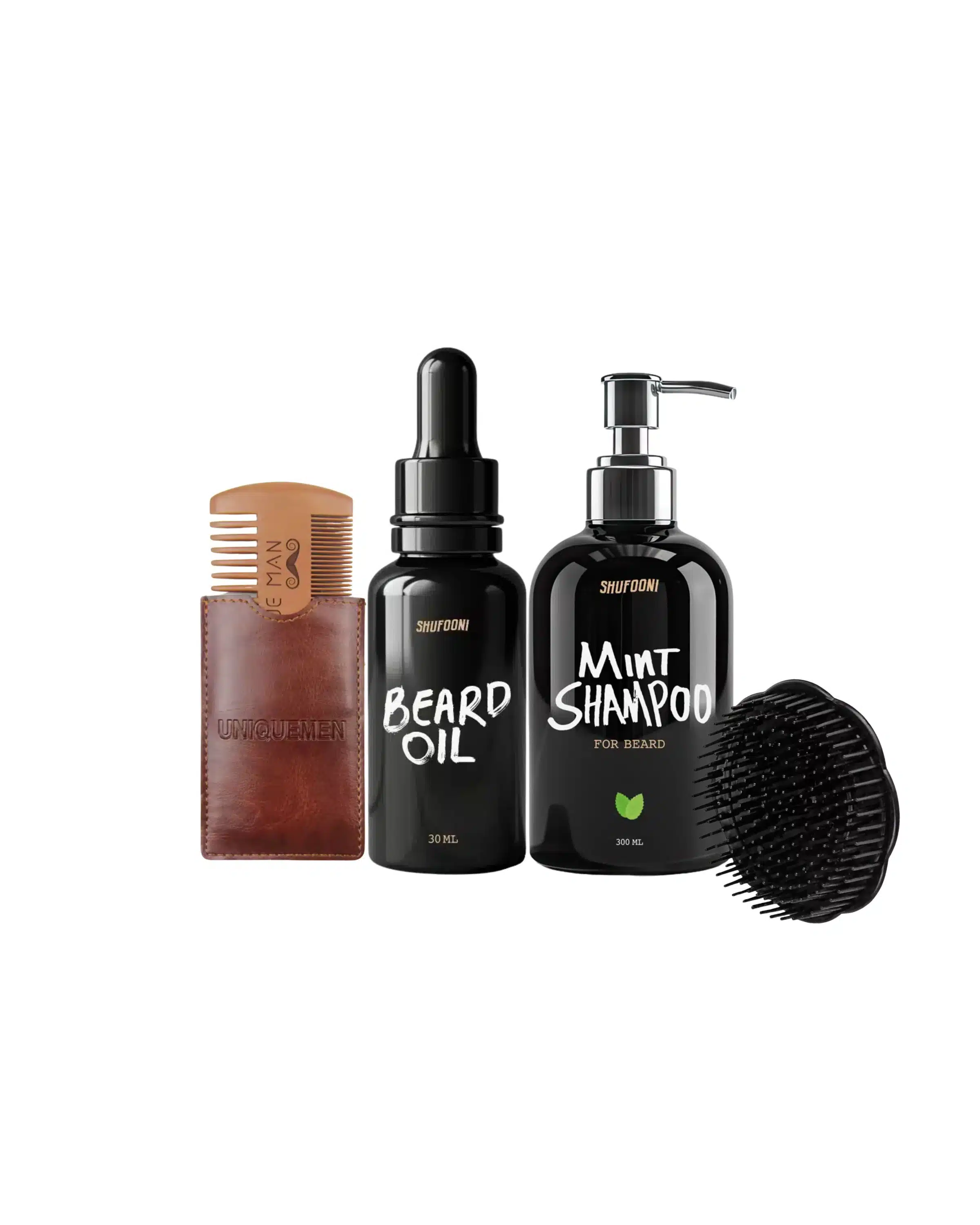 סט זקן פרימיום – שמפו מנטה ועץ התה + שמן זקן + מסרק + מברשת